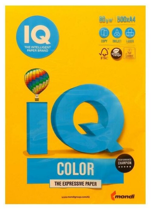 Купить Бумага IQ "Color intensive" А4, 80г/м2, 500л. (солнечно-желтый)