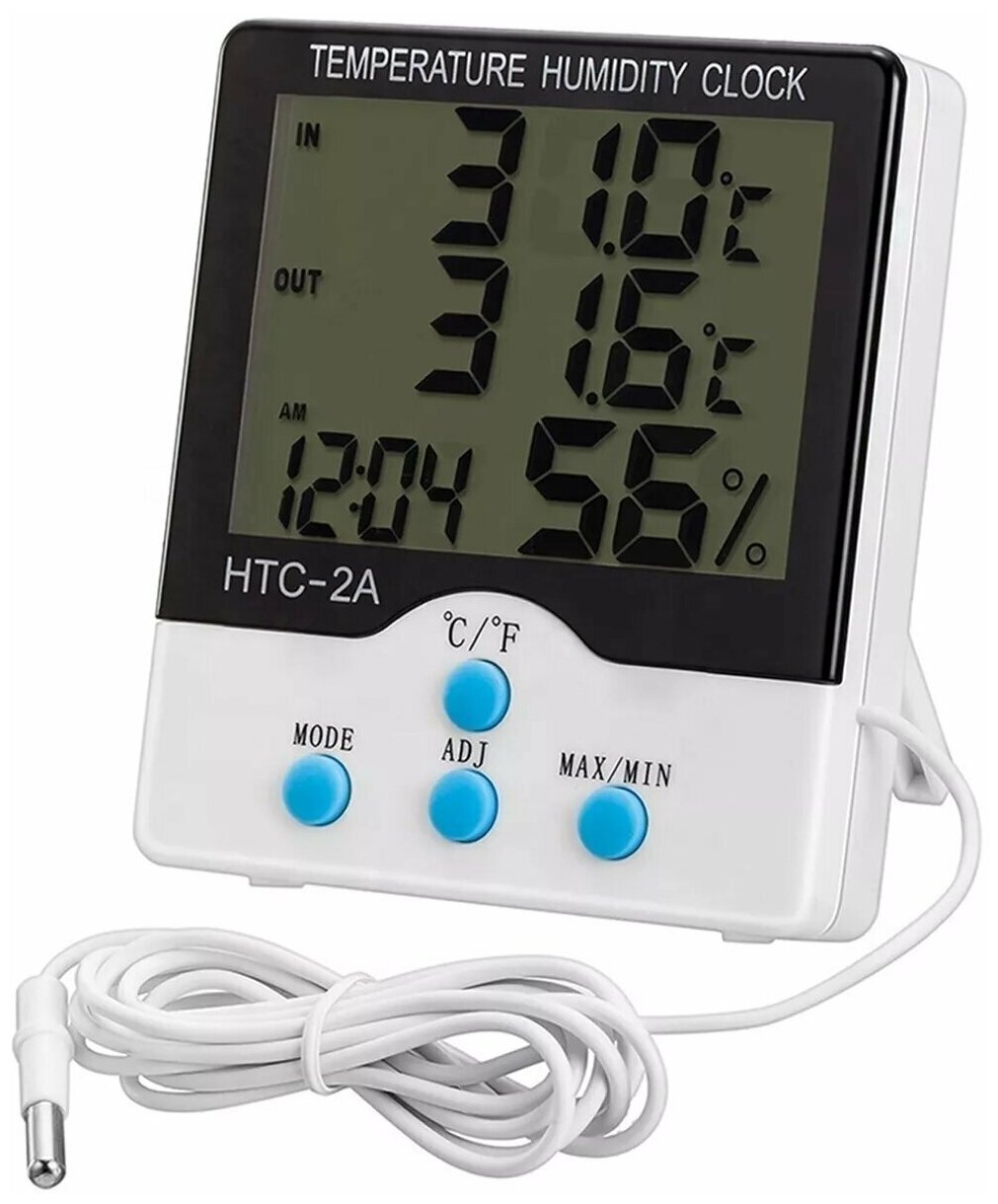 Купить Цифровой термометр с LCD дисплеем и гигрометром AG Smart, c часами и выносным датчиком HTC-2A