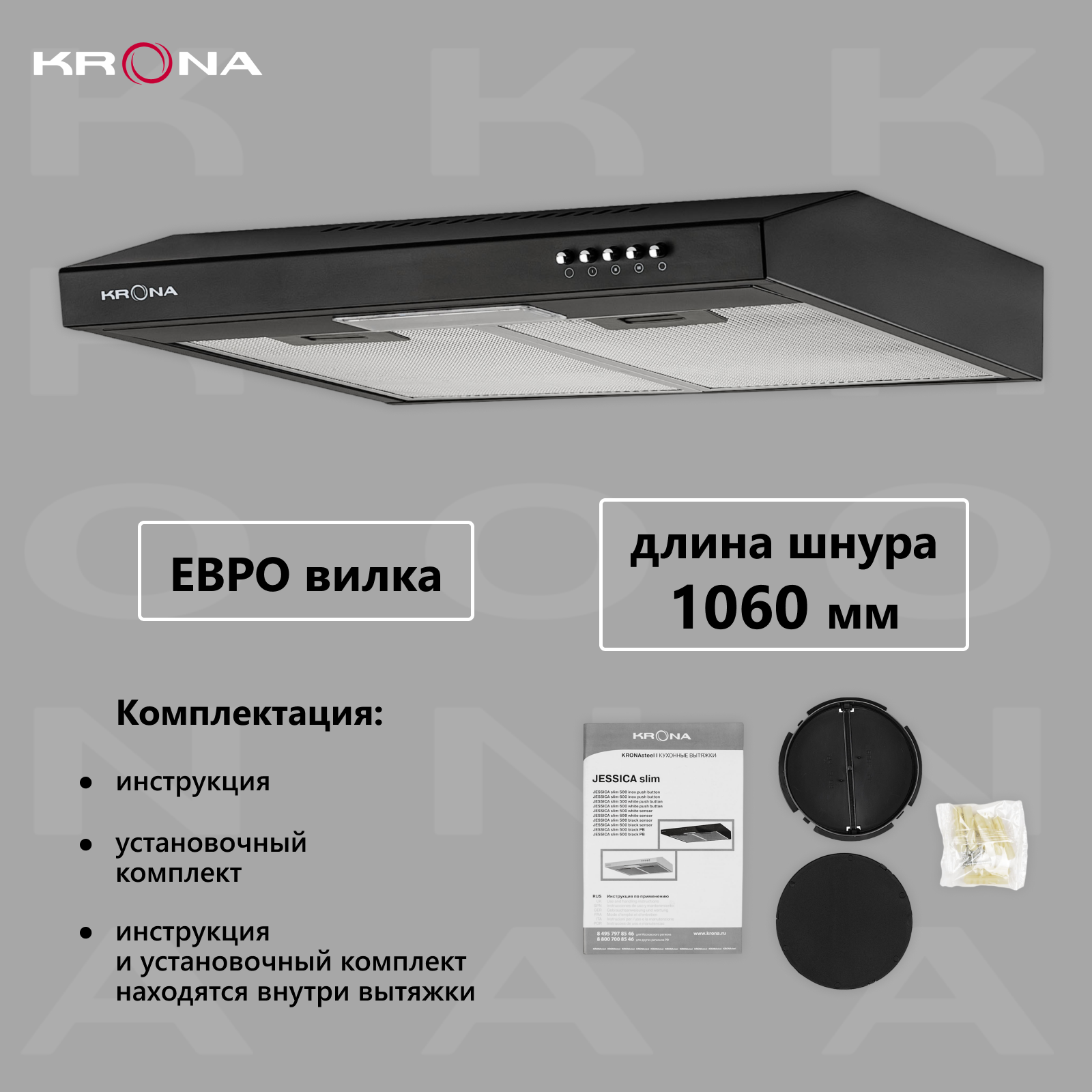 Вытяжка козырьковая Krona Jessica PB 500 slim, управление кнопочное, черный [00022840]
