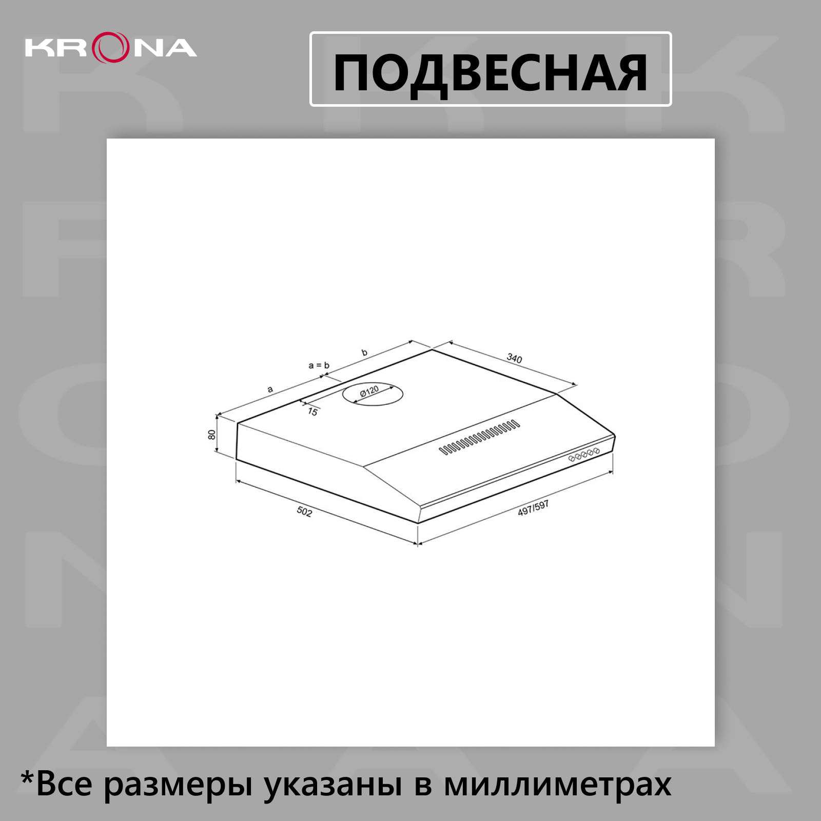 Подвесная вытяжка Krona Jessica slim PB 500 black