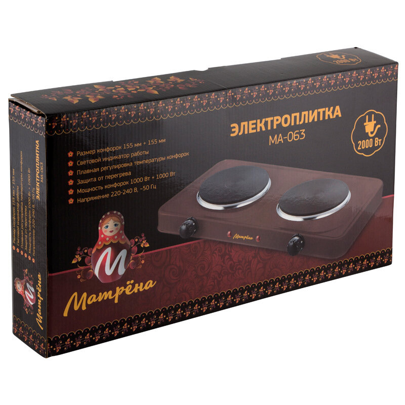Купить Плитка электрическая матрёна МА-063, 2000 Вт, 2 конфорки, коричневая