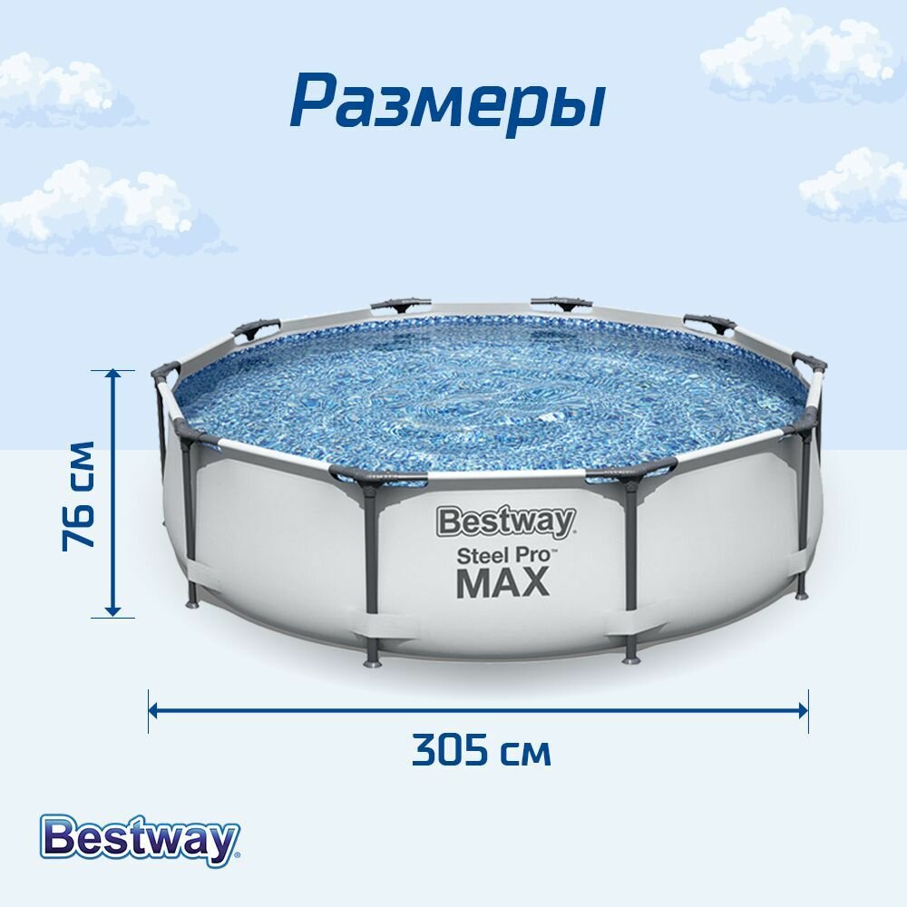 Bestway Бассейн каркасный Steel Pro Max, 305 х 76 см, с фильтр-насосом, 56408 Bestway