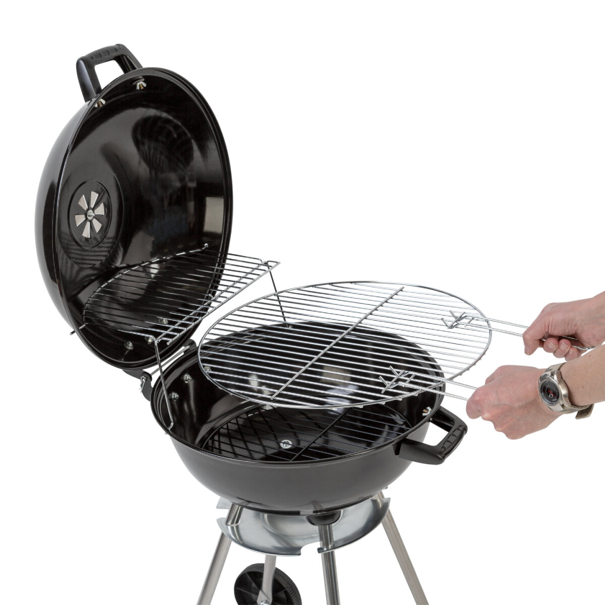 | Дополнительная информация | диаметр решётки для приготовления пищи: 43,5 см; покрытие решётки: хромированное; регулировка притока воздуха для изменения температуры; материал ручек: жаропрочный пластик (бакелит) |