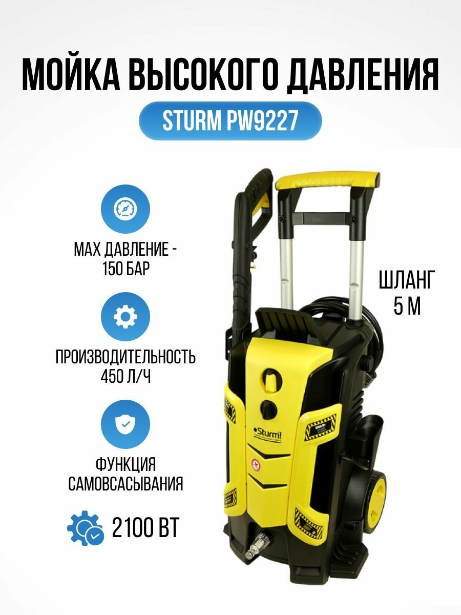 Мойка высокого давления Sturm!, PW9227 2.1кВт, 150 бар, ШВД-5м, функция всасывания