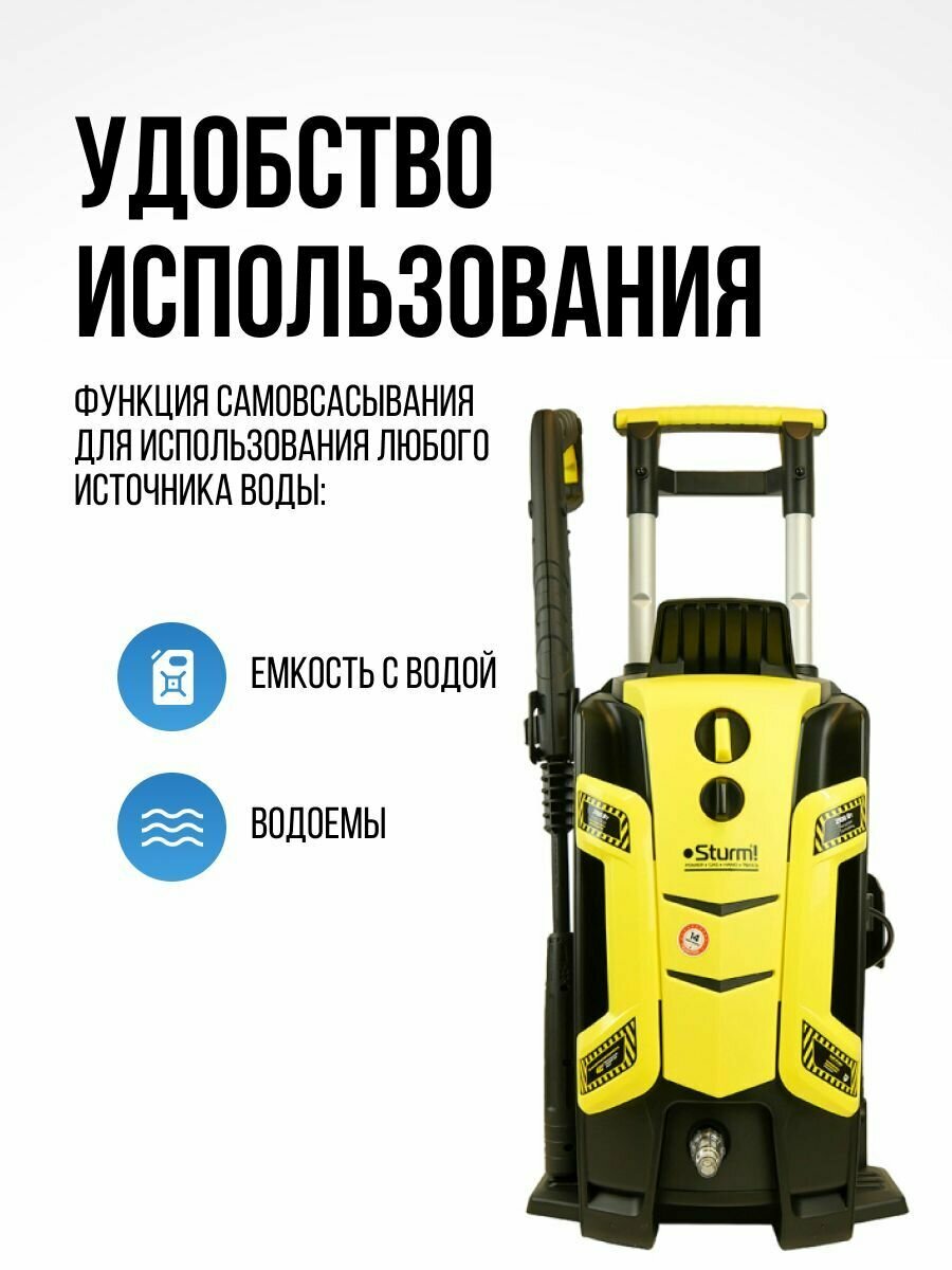 Мойка высокого давления, 2.1кВт, 150 бар, ШВД-5м, функция всасывания Sturm! PW9227