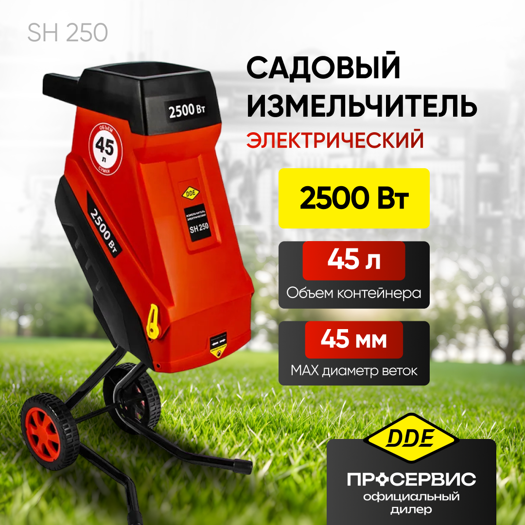 Измельчитель садовый DDE SH 250 электрический, 2.5 кВт, 4200 об/мин, для веток до 45мм, арт. 796-931