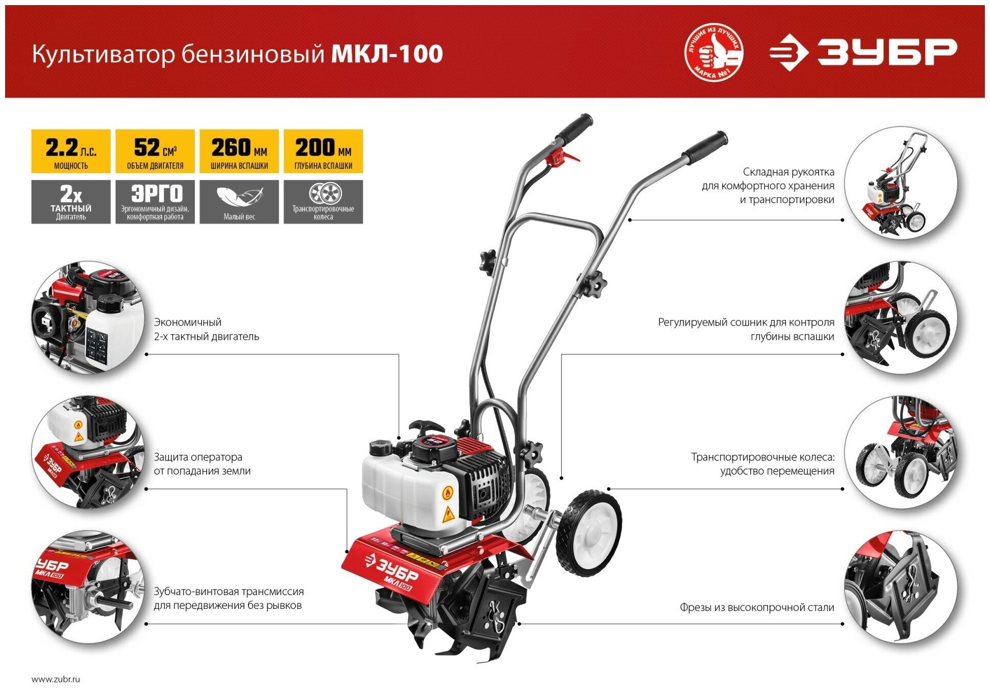 ЗУБР МКЛ-100 культиватор бензиновый 52 см3