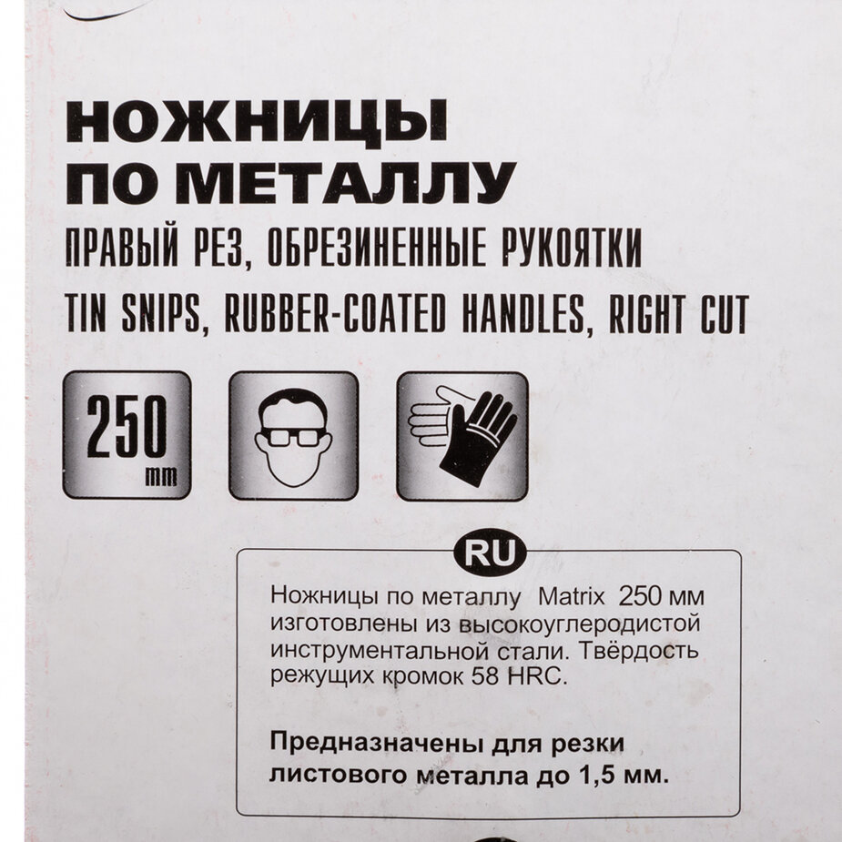 Ножницы по металлу Matrix 78332, правые, обрезиненные рукоятки, 250 мм Matrix 9406088 .