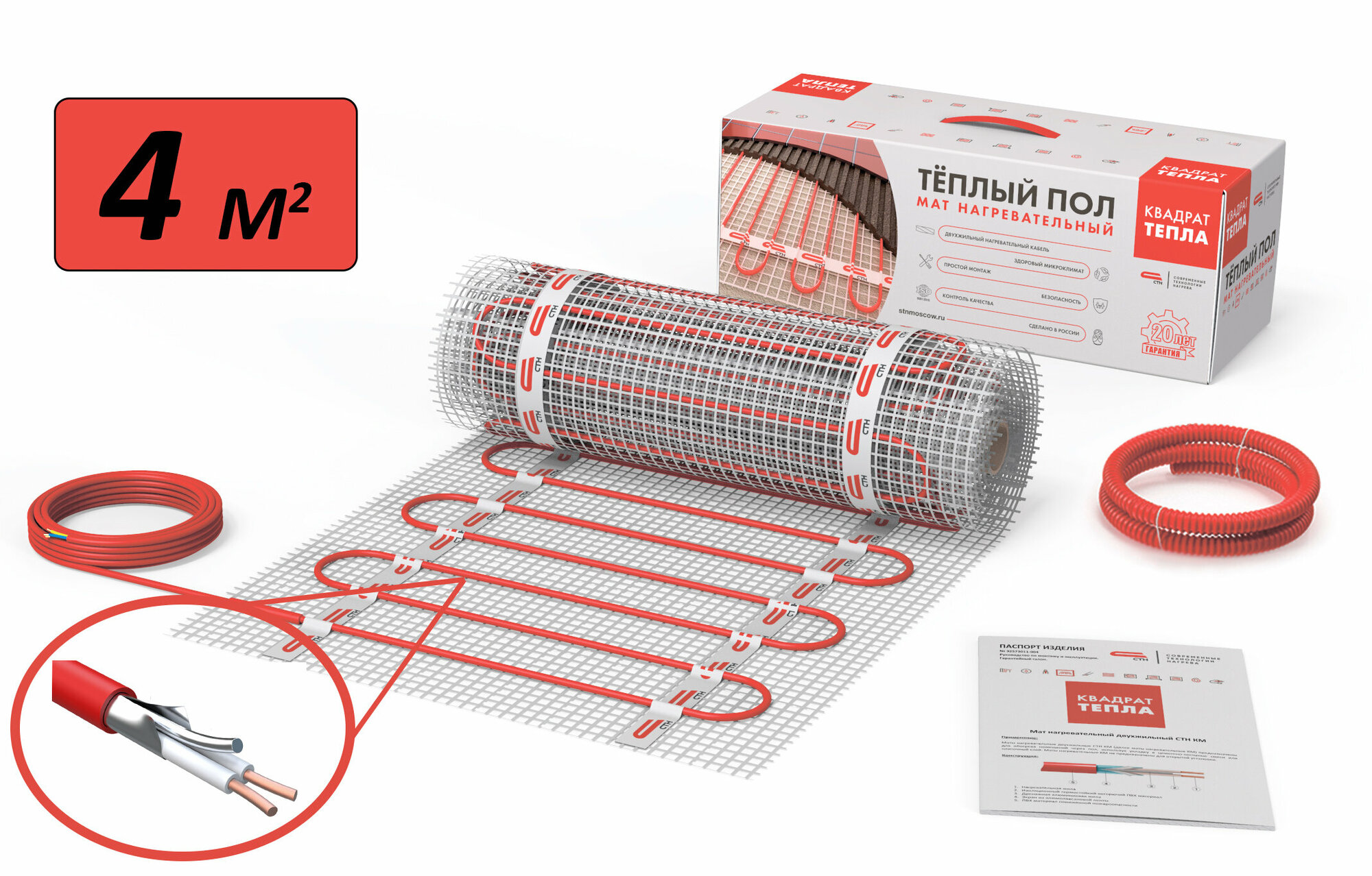 Нагревательный мат СТН Квадрат тепла КМ-600-4.0 150 Вт/м2 4 м2 600 Вт механический терморегулятор в подарок
