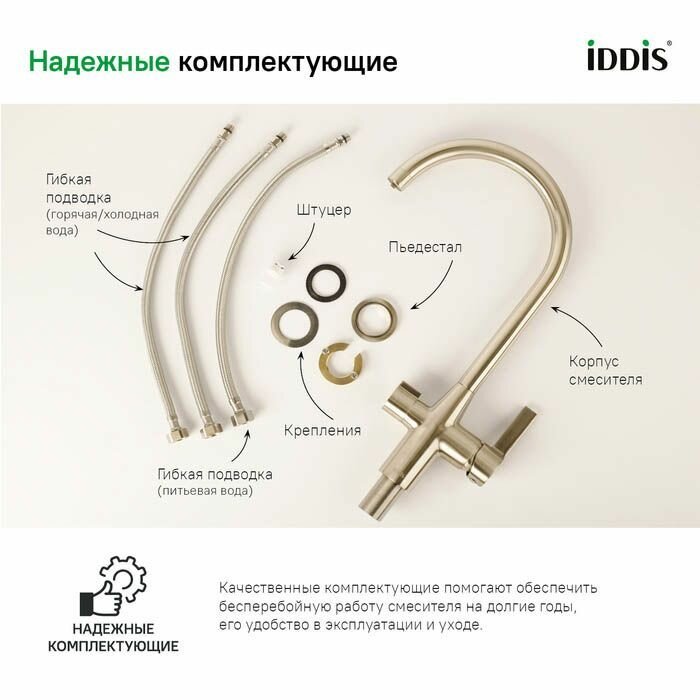 Смеситель для кухни 35к IDDIS PURBNFJi05 "Pure" с вых для питьевого фильтра, выс. пов излив сатин**