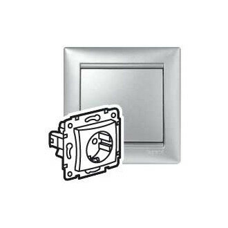 Розетка одинарная 1 м с заземлением со шторками Valena алюминий механизм встроенный монтаж (Legrand), арт. 770121