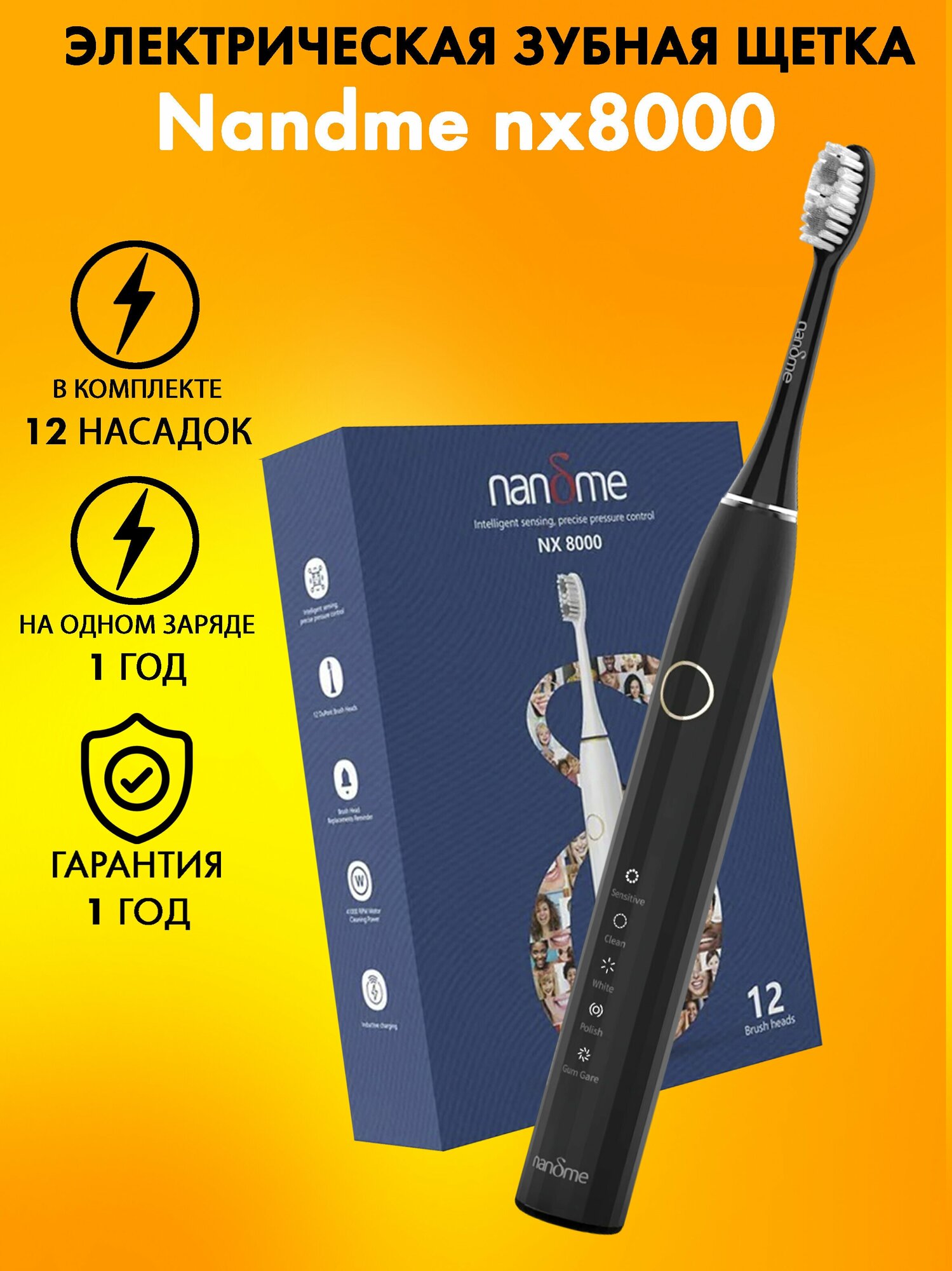 Электрическая звуковая зубная щетка Nandme NX8000-B12 (в комплекте двенадцать насадок), черный