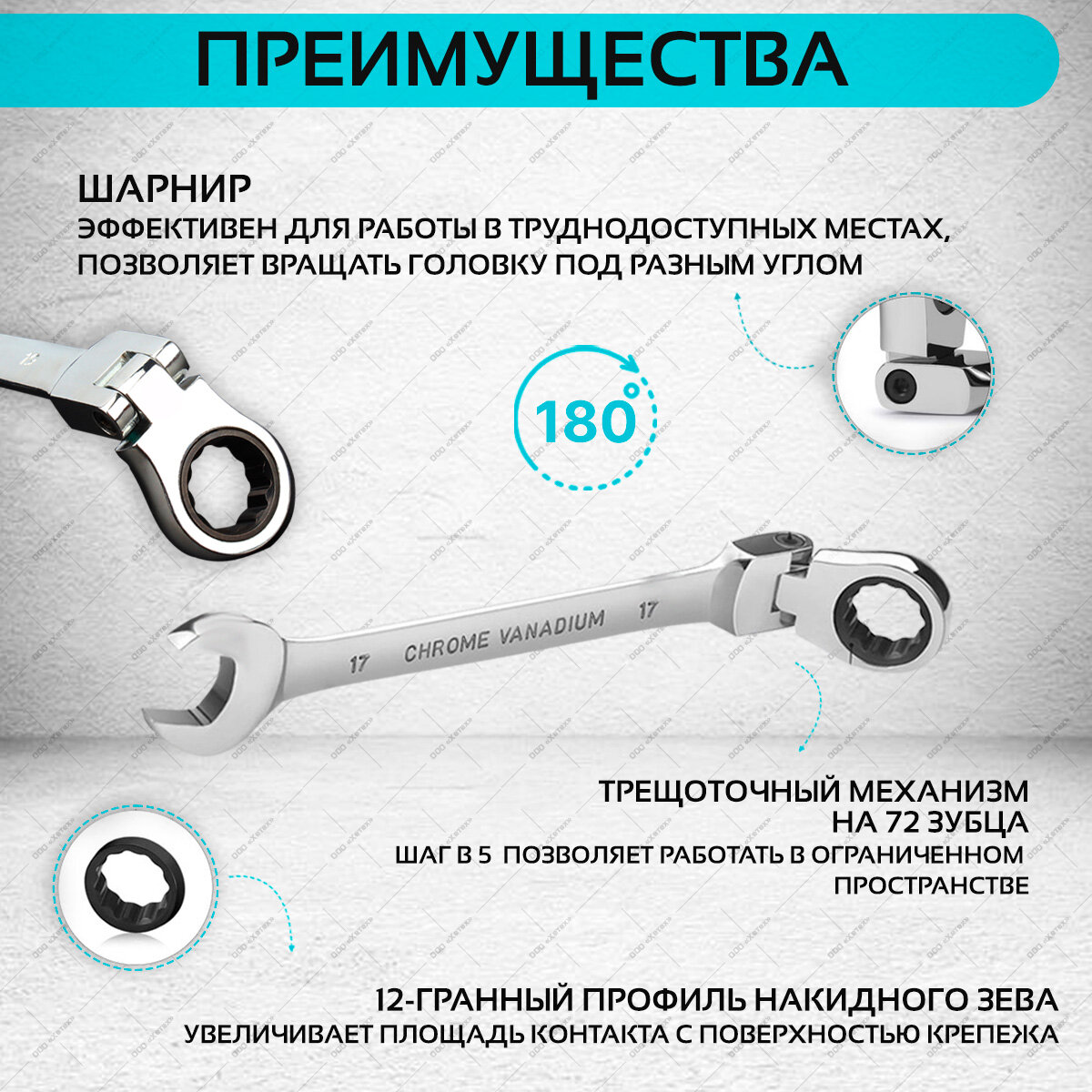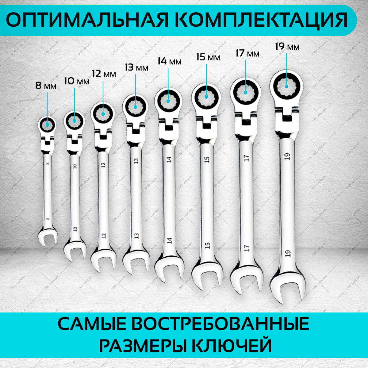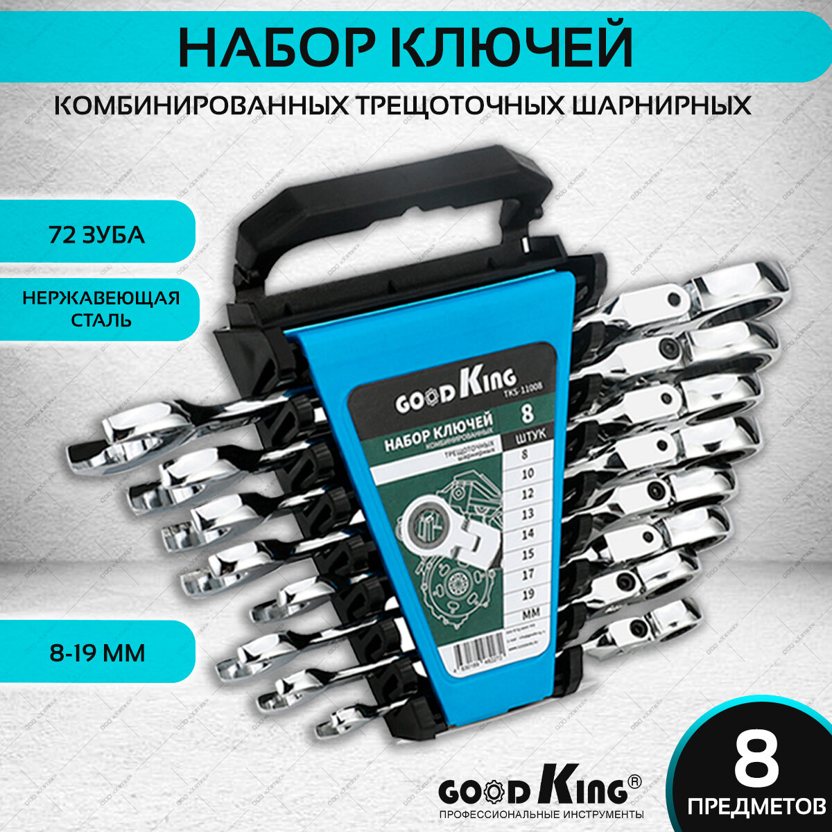 Набор ключей комбинированных трещоточных шарнирны Goodking TKS-11008 из 8 предметов