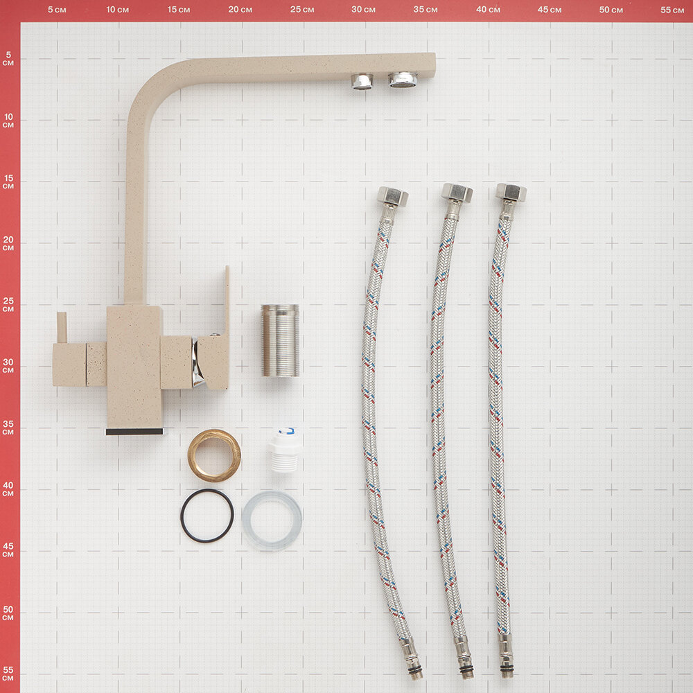 Смеситель для кухни Lavelly Dynamic бежевый с высоким изливом с подключением к фильтру (672183) интересное: