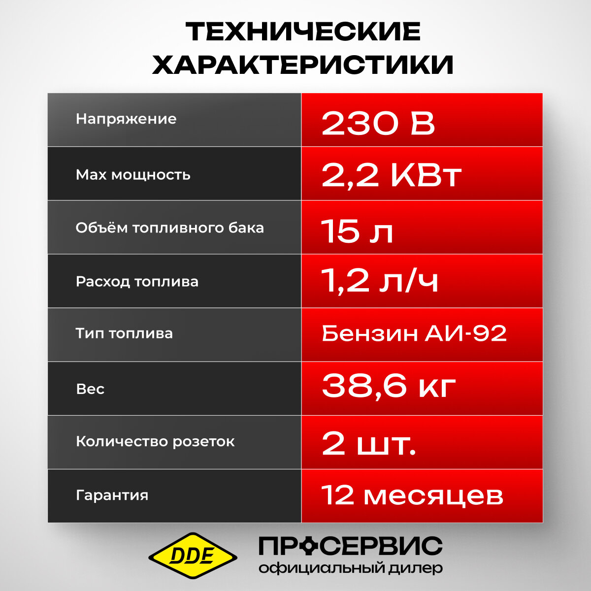 Генератор DDE G220, 220, 2.2кВт (919-945)