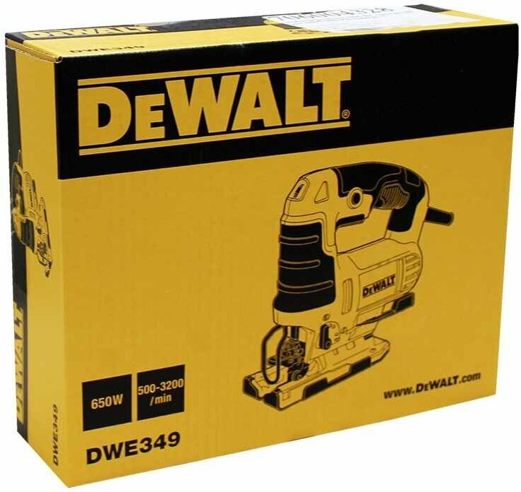 Электролобзик DeWALT DWE349, 650 Вт желтый/черный