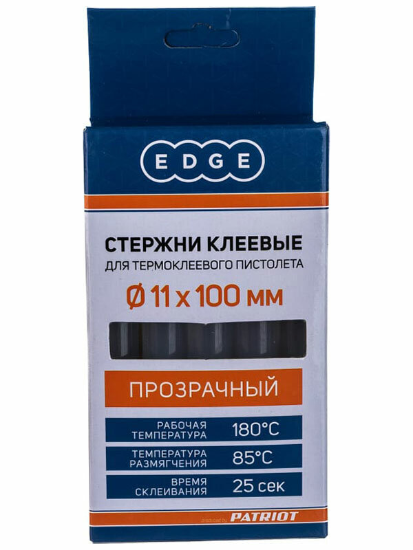 Стержни клеевые EDGE by PATRIOT 11*100мм прозрачные, упаковка 10шт