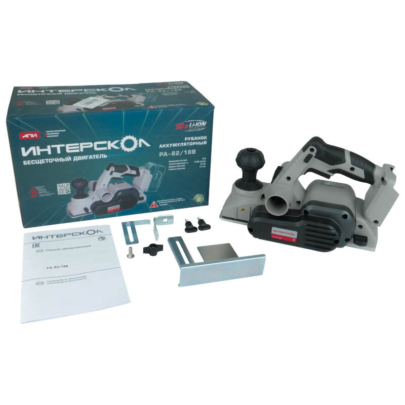 Рубанок аккумуляторный Интерскол РА-82/18В бесщеточный Li-ion АПИ (картон, без аккум. и ЗУ)