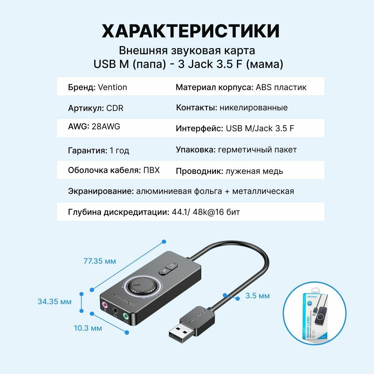 Звуковая карта Vention Cdrbb USB c регулятором громкости .