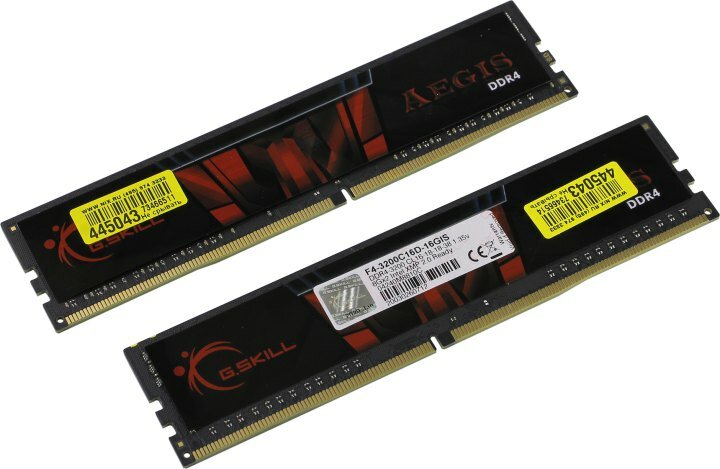 Модуль памяти G.Skill Aegis DDR4 DIMM 3200MHz PC-25600 CL16 - 16Gb KIT (2x8Gb) F4-3200C16D-16GIS