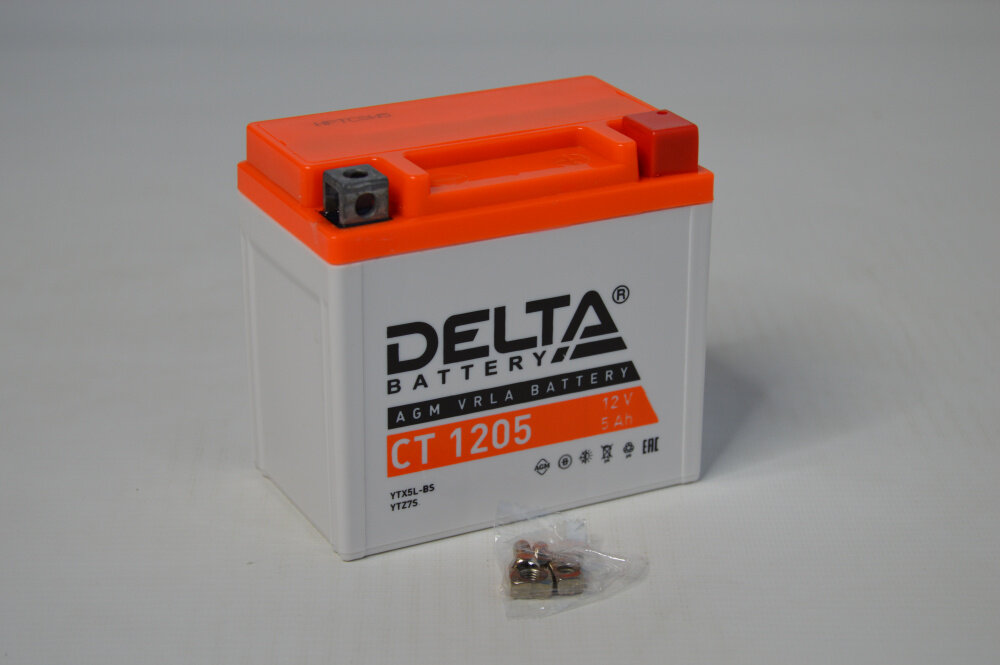 Аккумулятор для мотоцикла и скутера Delta CT1205 12V 5 А/ч 80 А обр. пол. залит/заряжен YTX5L-BS, YT5L-BS (114х69х109) AGM VRLA