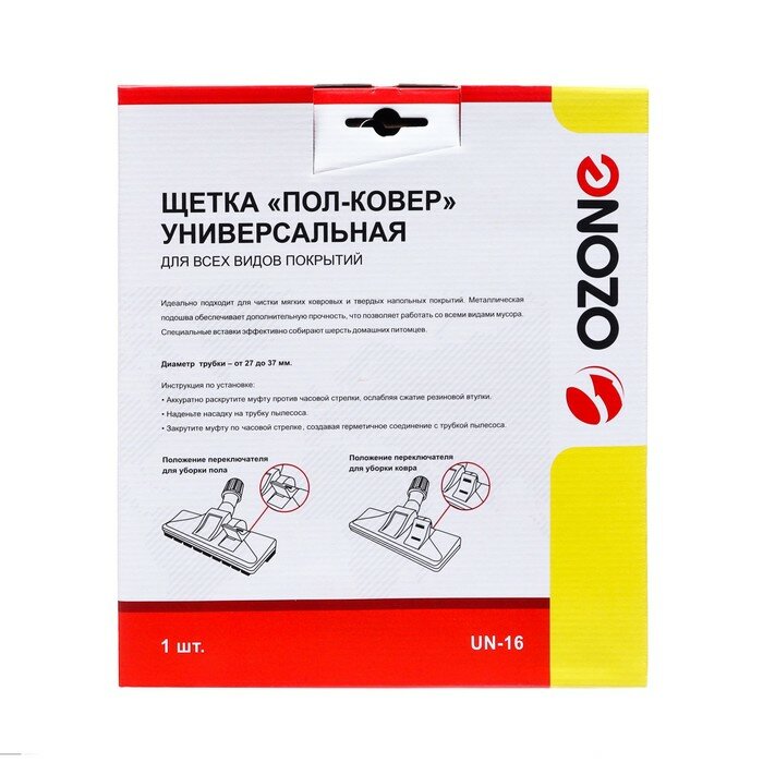 OZONE Универсальная щетка для пылесоса "Пол-ковер" Ozone для всех видов покрытий, под трубку 27-37 мм UN-16