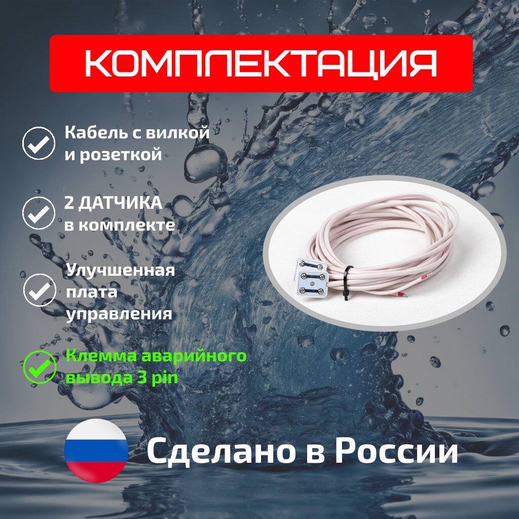 | Подробная комплектация | Блок защиты от протечек, 2 датчика протечки, Инструкция |