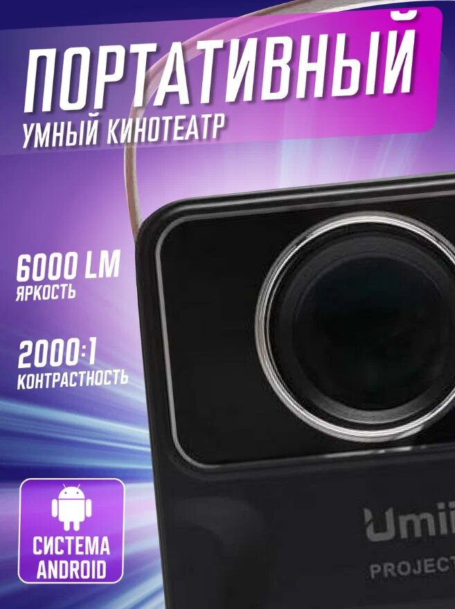 Проектор для дома UMIIO SMART FULL HD с системой 5G Android и поддержкой Wi-Fi / Домашний проектор Smart Tv / Видеопроектор для офиса