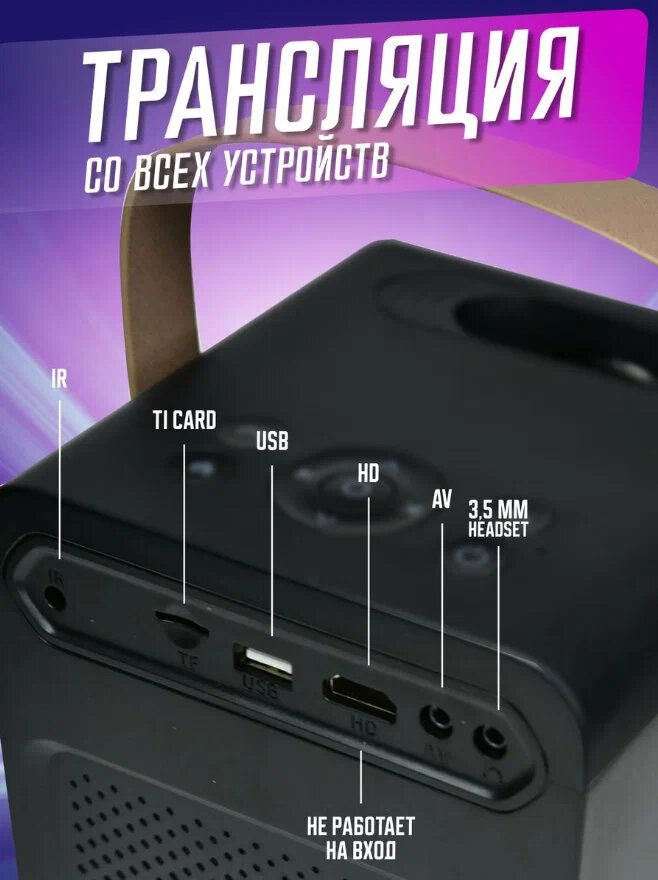 Не хватает настройки линзы, нужно установить проектор ровно по центру, поэтому без штатива не обойтись, это самый большой минус. В apple вселение не работает, как внешний экран iPod MacBook или iPhone не сможете использовать |