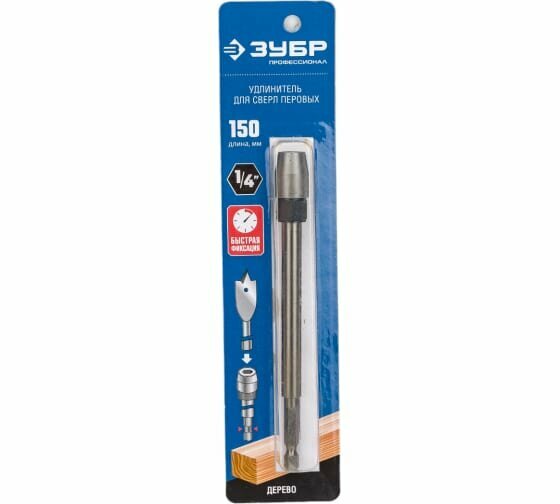 ЗУБР 150мм, удлинитель с быстросъемным устройством для сверл перовых, хвостовик HEX 1 4 , (29508-150_z01)