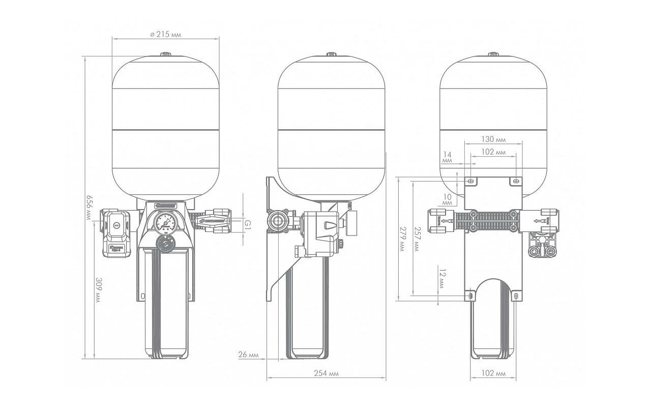 Гидроаккумулятор с блоком автоматики ДЖИЛЕКС краб-т 10 10 л вертикальная установка
