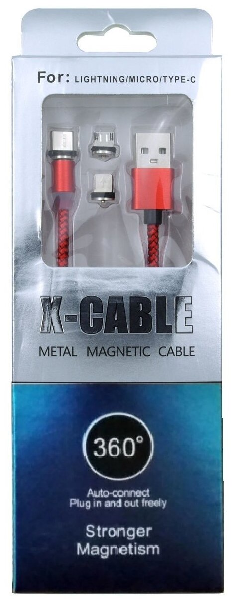 СохранитьМагнитный USB-кабель для зарядки смартфона с 3-мя разъемами (microusb, type C, Lightning) . 3 в 1. Цвет: Красный интересное: