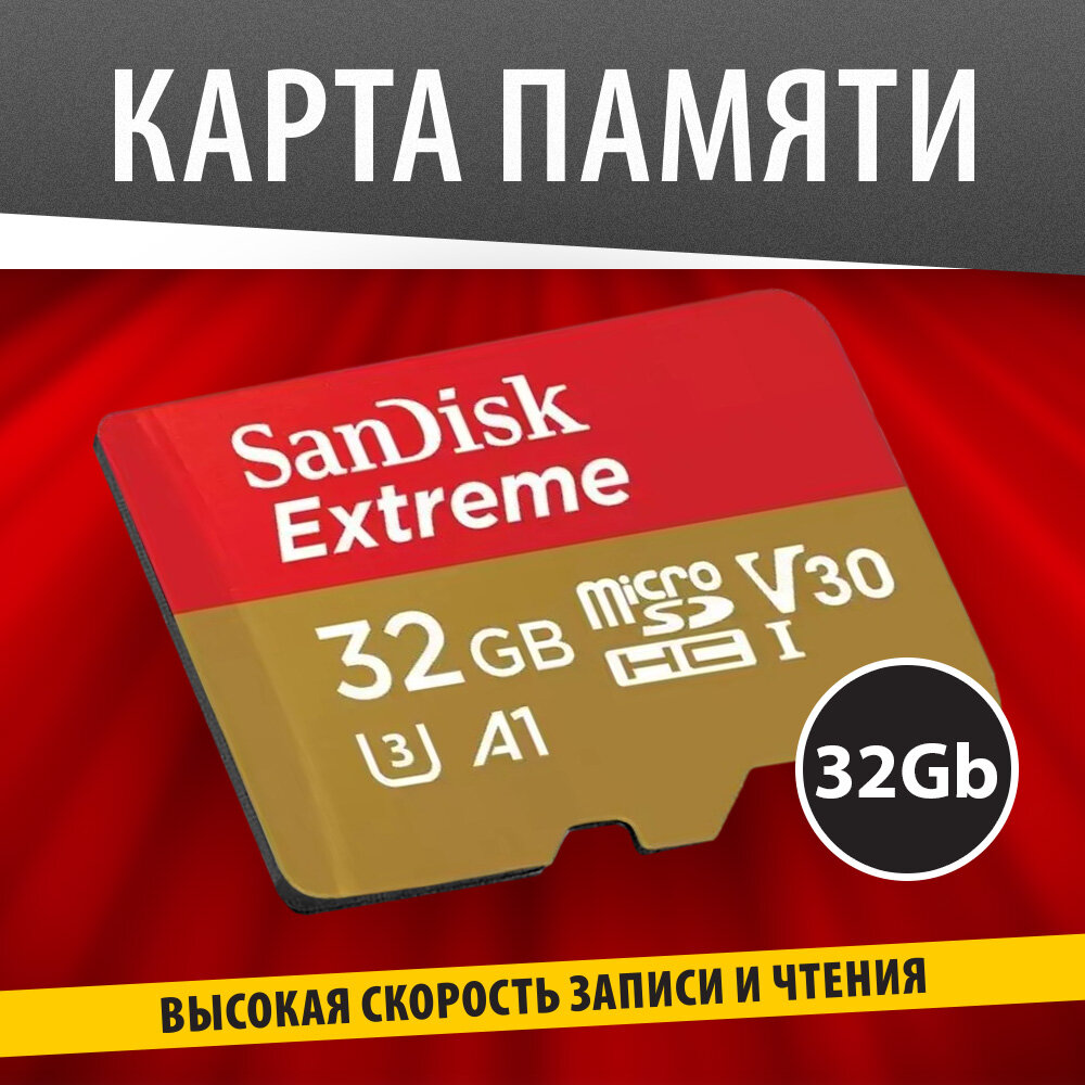 Карта памяти microSDHC UHS-I U3 Sandisk Extreme 32 ГБ, 100 МБ/с, Class 10, SDSQXAF-032G-GN6MN, 1 шт.