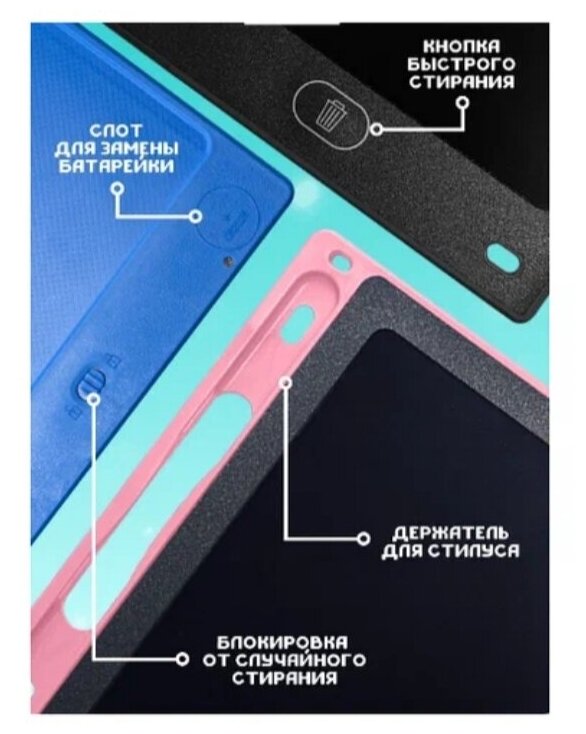 | Отзыв: | Не много расстроена. Вверху есть пятнышки не исчезают. Ручку не достать ..Только если привязать. Рисует, стирает . но темные рисунки. Не яркий раскрась на черном экране. |