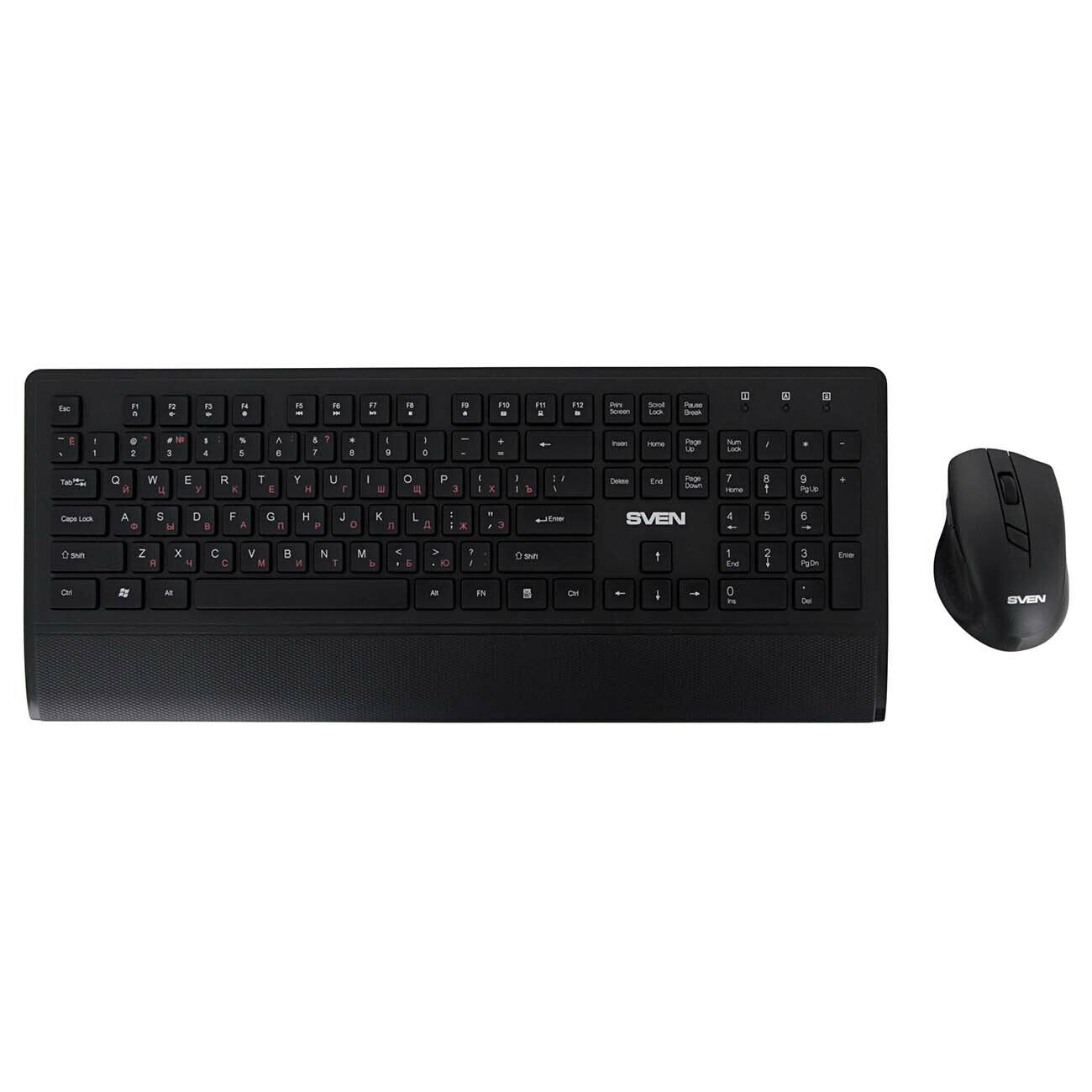 SVEN KB-C3800W Набор беспроводные клавиатура, мышь + коврик чёрные (USB, 104 кл, 6 кнопок, 1600 dpi, 300 x 230)