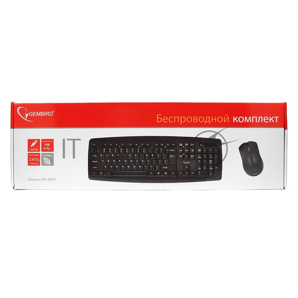 Комплект кл-ра+мышь беспров. Gembird KBS-8000, 2.4ГГц, черный, 104 клавиши+3 кнопки+колесо кнопка, 1600 DPI, батарейки в комплекте