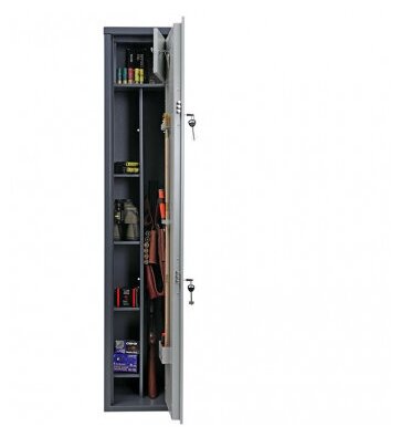 Сейф оружейный Aiko Беркут 150 на 4 ствола, высота ружья 1454мм, 2 ключевых замка, с отделением для патронов, ВхШхГ:1480х300х300мм, толщина стенки 2мм интересное: