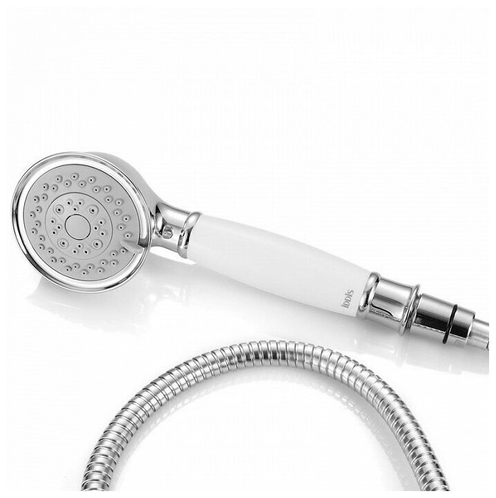 | Комплектация | смеситель - 1 шт. / гибкий шланг - 1 шт. / поворотный держатель для лейки на корпусе смесителя - 1 шт. / ретро-лейка для душа - 1 шт. / эксцентрики с отражателями - 1 шт. |