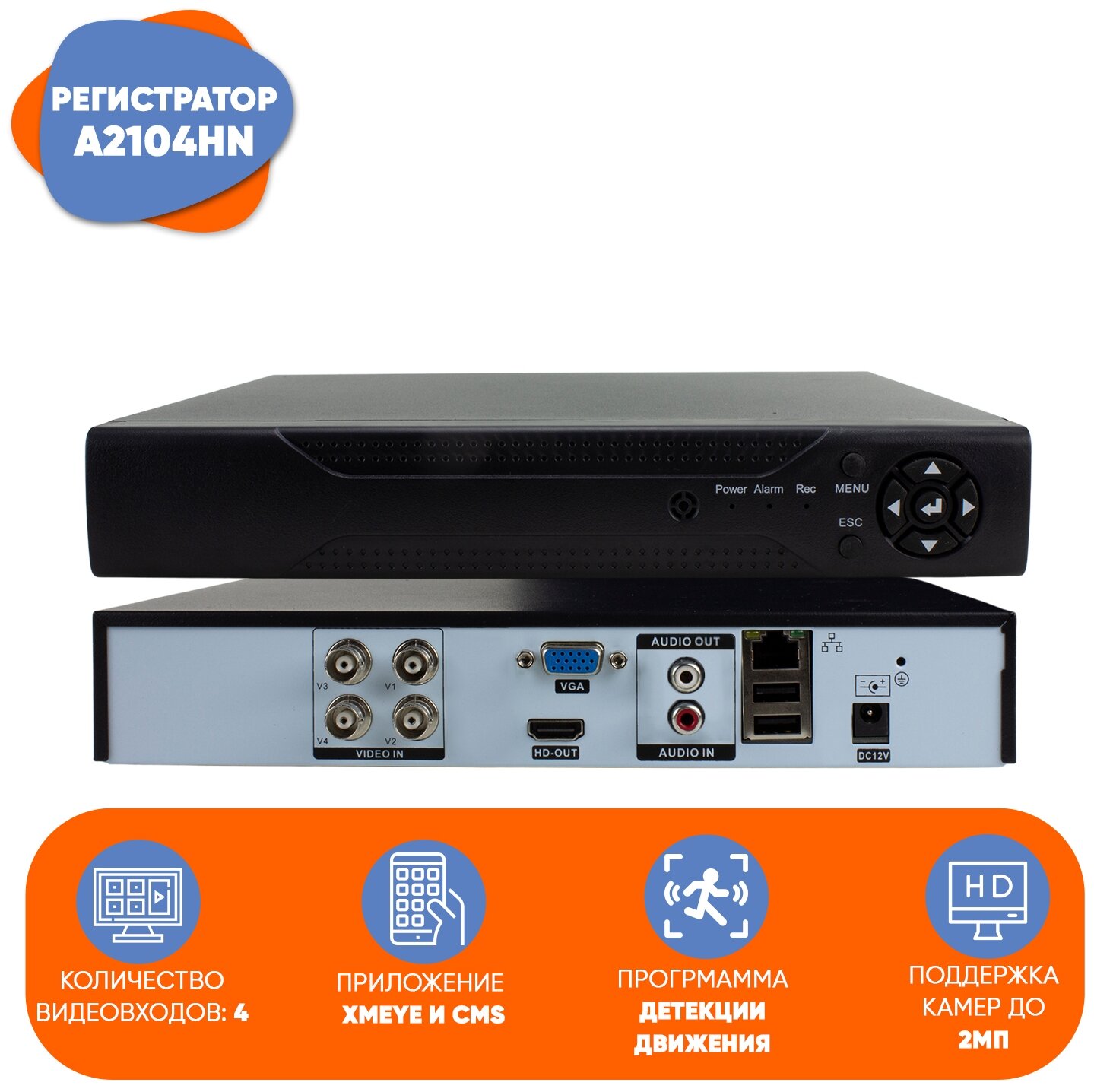| Дополнительная информация | сжатие видео: H.265, формат записи: D1 (704x576)/ 960H (928x576)/ 720P (1280x720)/ 1080N (960x1080), частота кадров: D1 22fps/ 960H 22fps/ 720P 22 fps/ 1080N 22fps, видео вход: 4 разъема BNC, видео выход: 1 разъем BNC, 1 разъем VGA, 1 разъем HDMI, аудио вход: 4 разъема RCA, аудио выход : 1 разъем RCA, режим записи: ручной режим, по детектору движения, по расписанию, проигрывание: воспроизведение 4-х каналов, хранение записей: жесткий диск формата 3.5" SATA, режим резервного копирования: сеть, USB накопитель, сетевой порт: RJ45 10Мб / 100Мб, порт управления PTZ: RS-485, порт USB : 2 х USB 2.0, порт HDD : 1 x HDD SATA до 6000 Гб формат 3.5", электропитание: внешний источник питания DC 12В / 2A, рабочая температура: -10°С....+55°С, рабочая влажность: 10%-90%, видеокамера купольная (для помещений), матрица: 1/2,7" CMOS 2Мп SC2235, чипсет: XM330, разрешение: 1920x1080px, ИК-подсветка: 12 IR LED светодиодов, дальность ИК-подсветки: до 20 метров, объектив: 3.6 мм, светочувствительность : 0 Лк при вкл. ИК подсветке |