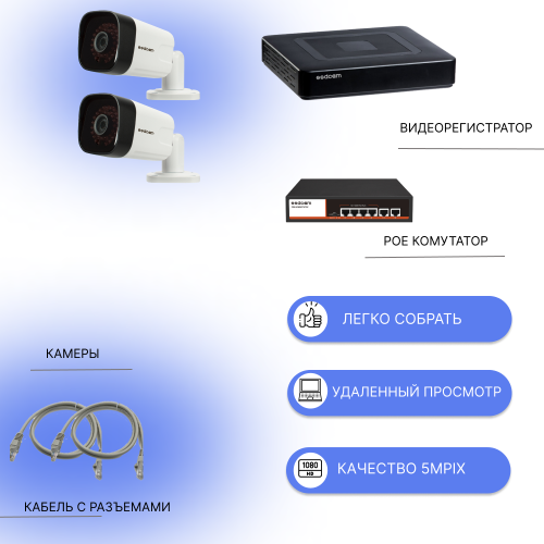 Комплект видеонаблюдения IP c 2 антивандальными камерами 5мпх интересное: