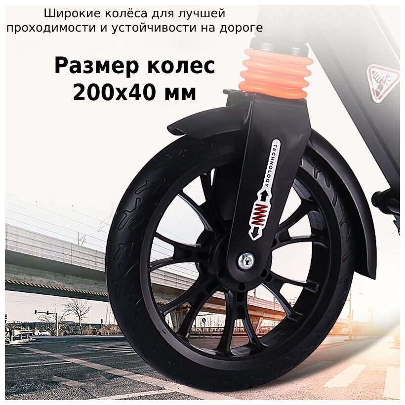 Городской самокат Scooter Disk Brake 2024 с ручным дисковым тормозом и амортизаторами Чёрный