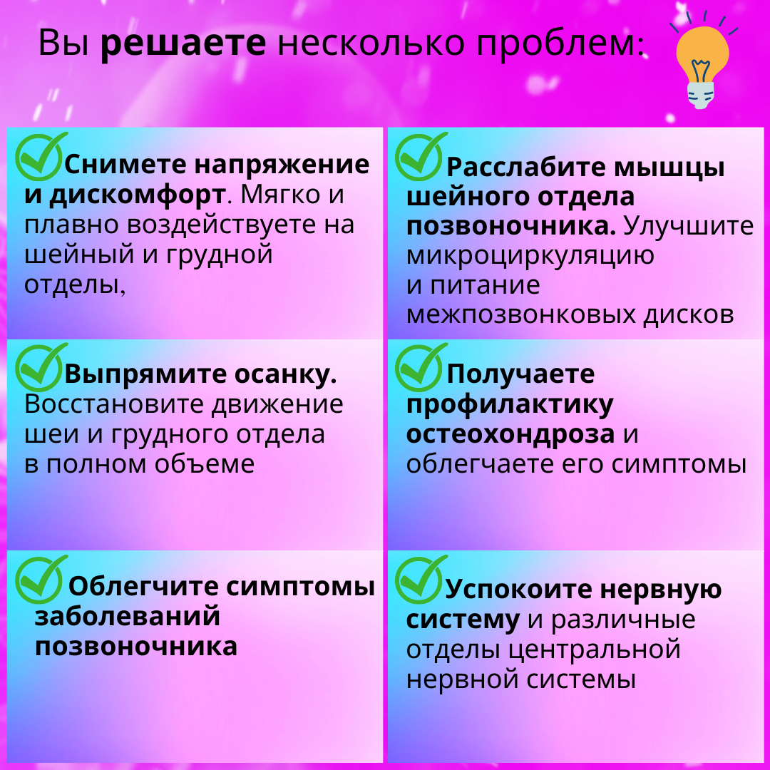 | Плюсы: | Шикарный набор, мучался шейным остеохондрозом! Постоянные головные боли, после 5-10 применений головные боли практически прошли. Шикарный аппарат |