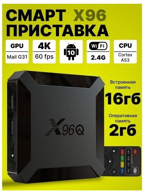 Купить 2022 Смарт ТВ приставка, тв бокс X96q Андроид 10, 2/16 Гб 4К