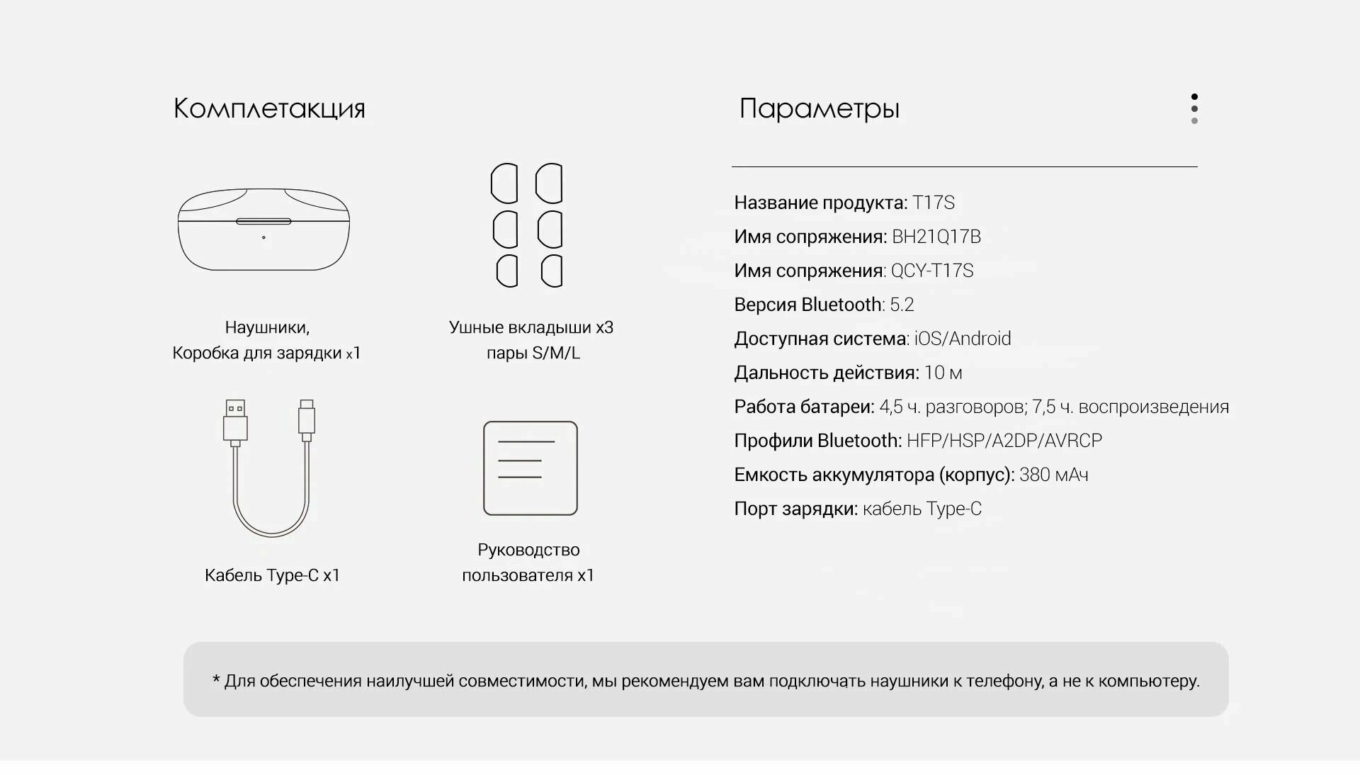Ниже Вы можете прочитать отзывы на Беспроводные наушники QCY T17S, белый, ознакомится с подробными характеристиками, посмотреть интересные обзоры и фотографии на Беспроводные наушники QCY T17S, белый.