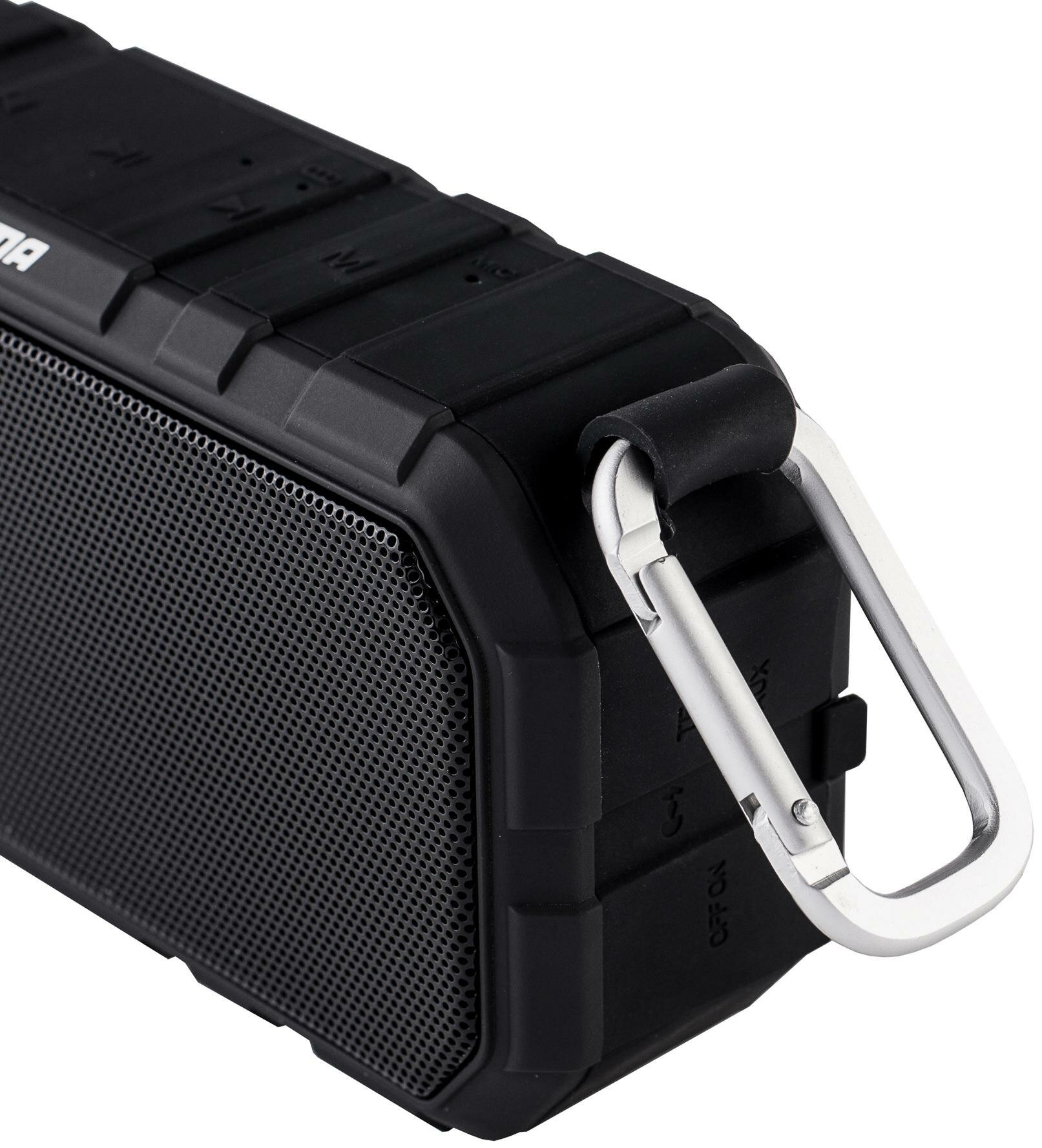 | Плюсы: | Аккумулятор 2000 мАч, стоимость, есть карабин, громкий звук и при максимальной громкости нет дребезжания. Защита корпуса от влаги (брызги, например). |