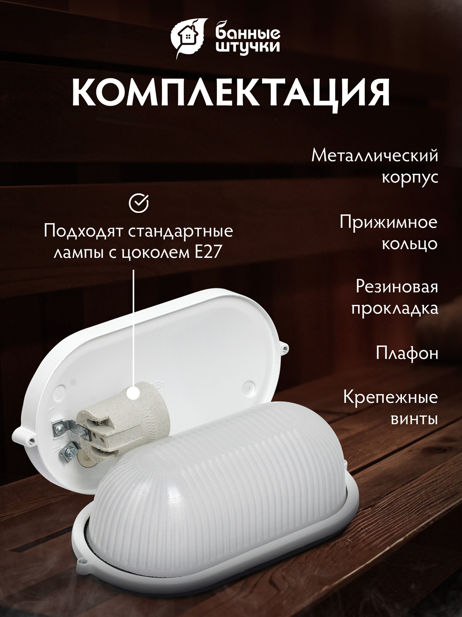 Светильник для бани и сауны Банные штучки 32500, E27, металлический, овальный