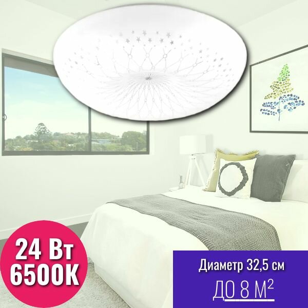 Светильник потолочный светодиодный ЭРА SPB-6-12-4k pautina / Люстра потолочная светодиодная на кухню, накладная, круглая, в детскую, в спальню, в гостиную, в зал, модерн, белая, 12Вт, 4000К