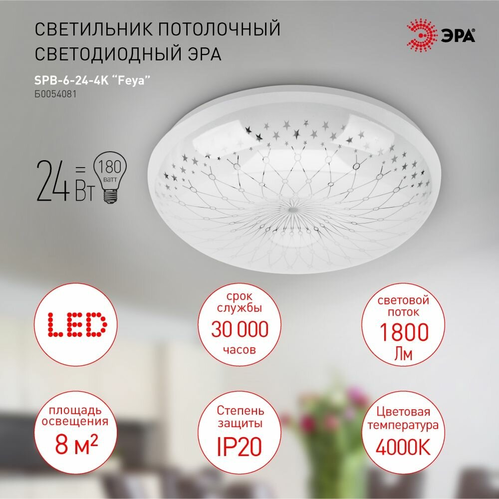 Светильник светодиодный бытовой SPB-6 Slim 8 24-4K 24Вт 4000K (20160), ЭРА Б0043822 (1 шт.)