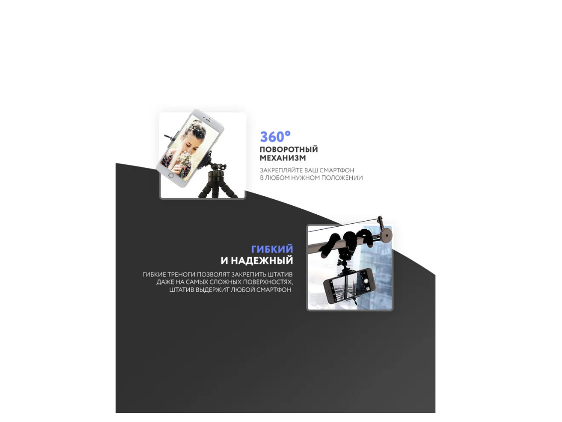 | Минусы: | Хлипкий штатив на соплях, не держит телефон абсолютно, соединения - хлипкий пластик |