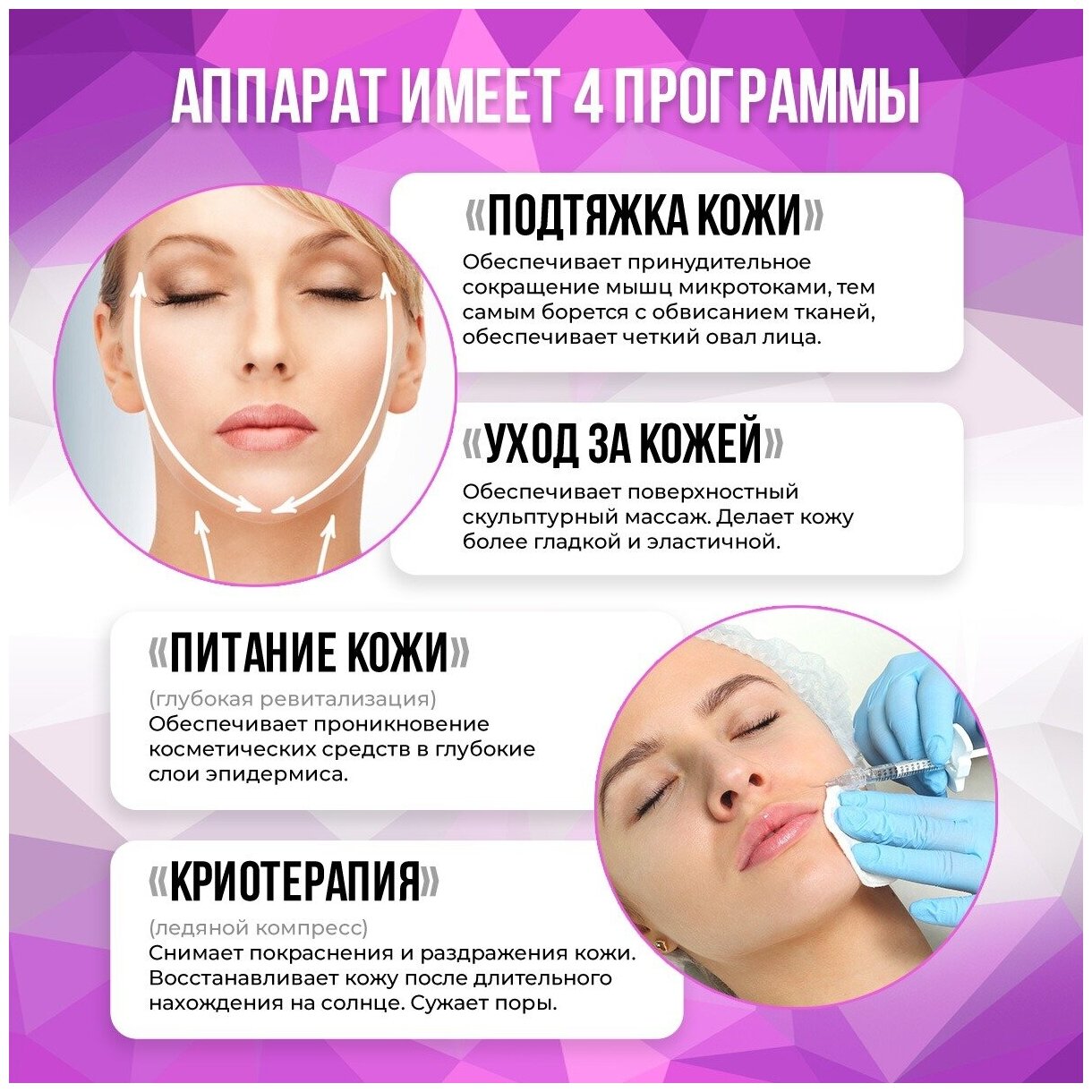 Массажер для лица и тела / аппарат для подтяжки и омоложения кожи / фиолетовый / EMS, лифтинг, LED-терапия интересное:
